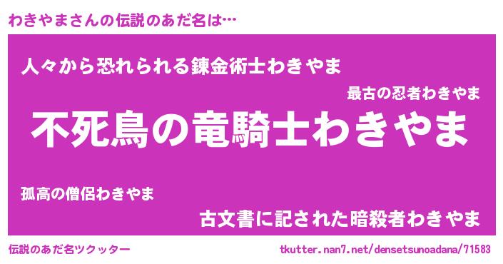 | 女子向けラノベタイトル風あだ名 | 『わきやま姫と円卓の騎士』 |