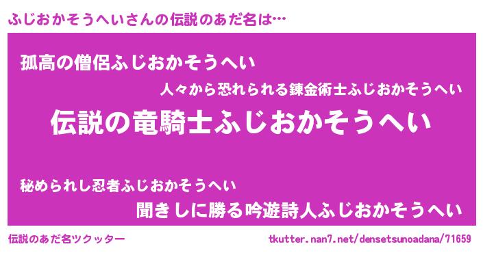 | 意味不明あだ名 | 『ペロリンふじおかそうへい』 |