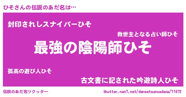 | ヒーロー風カッコイイあだ名 | 『仮面ヒソダー』『ウルトラひそマン』 |