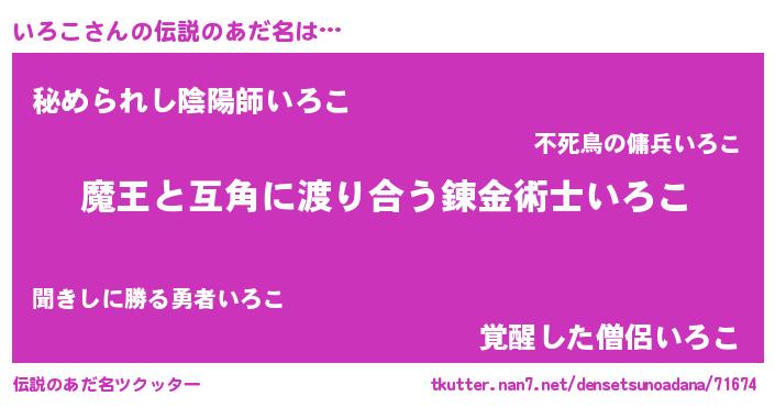 | 意味不明あだ名 | 『なめこ科いろこ属』『自称いろこ』 |