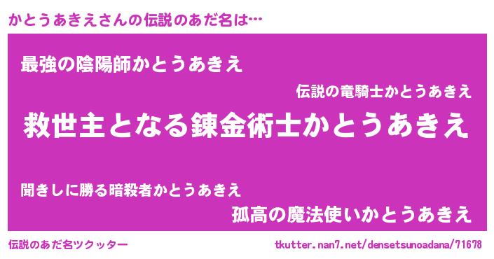 | ヒーロー風カッコイイあだ名 | 『天空の使者かとうあきえ』 |