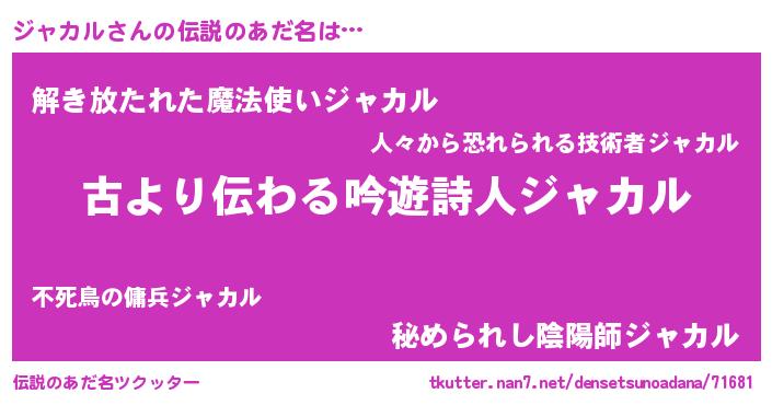 | 男性向けラノベタイトル風あだ名 | 『魔法科高校のジャカル』 |