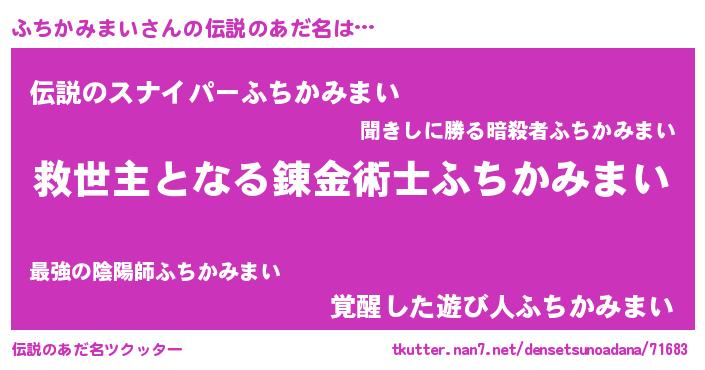 | 女子向けラノベタイトル風あだ名 | 『死神ふちかみまいの再婚』 |