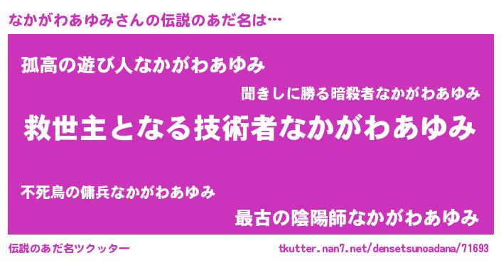 | 男性向けラノベタイトル風あだ名 | 『ノーゲーム・ノーナカガワアユミ』 |
