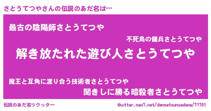 | 意味不明あだ名 | 『自称さとうてつや』 |