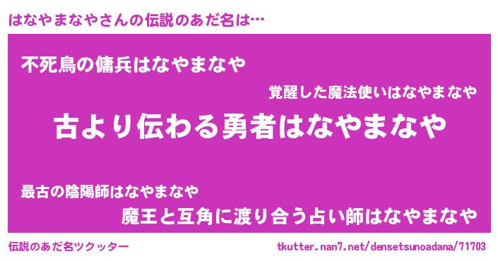 | 男性向けラノベタイトル風あだ名 | 『はなやまなやという概念が存在しない退屈な世界 』 |