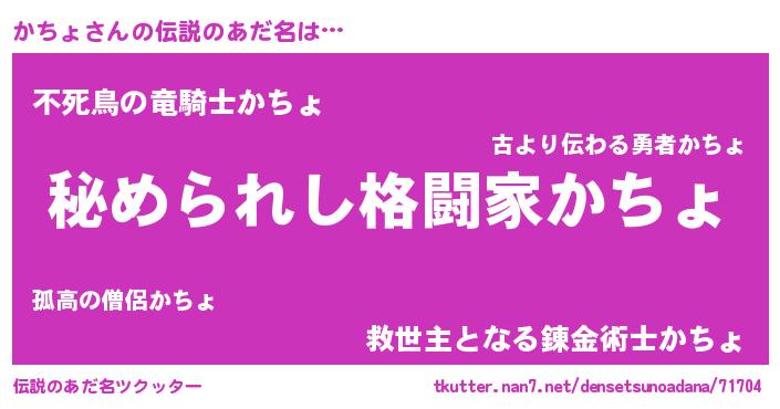 | ファンタジー風あだ名 | 『ヴァルカチーナ』『エターナルカチョー』 |