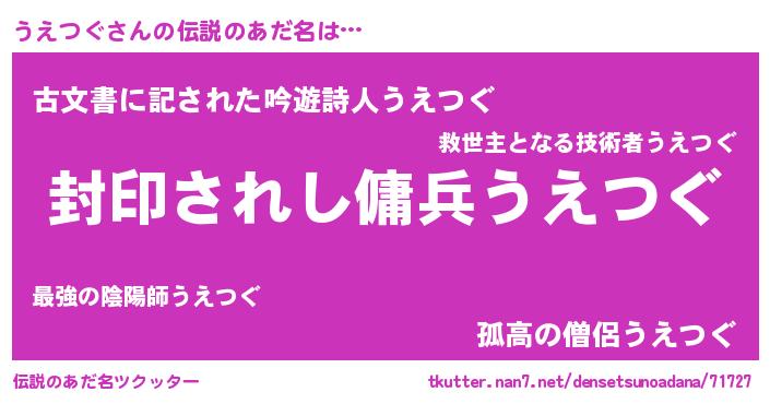 | 男性向けラノベタイトル風あだ名 | 『ウエツグアートオンライン』 |