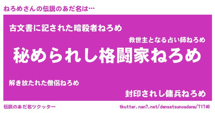 | 意味不明あだ名 | 『ねろめフォーエバー』『永久保存ねろめ』 |
