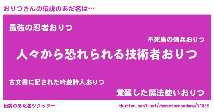 | ヒーロー風カッコイイあだ名 | 『正義の使者おりつ』『炎刃騎士オリ』 |
