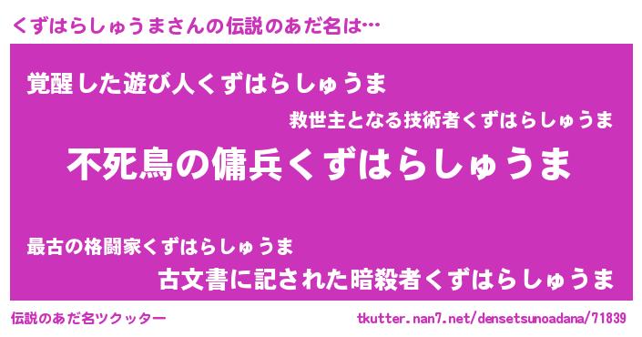 | 意味不明あだ名 | 『もやし科くずはらしゅうま属』 |