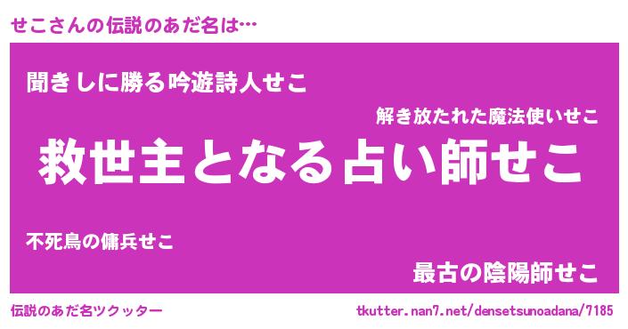 | 女子向けラノベタイトル風あだ名 | 『死神せこの再婚』『せこの雑貨屋さん』 |