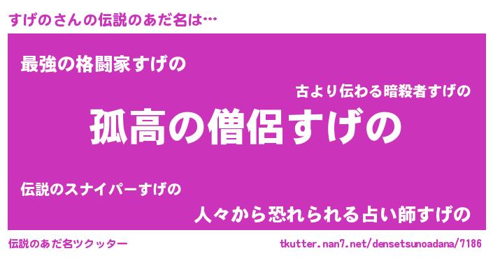 | ヒーロー風カッコイイあだ名 | 『魔戒騎士スゲ』『サイバー戦士スゲノ』 |