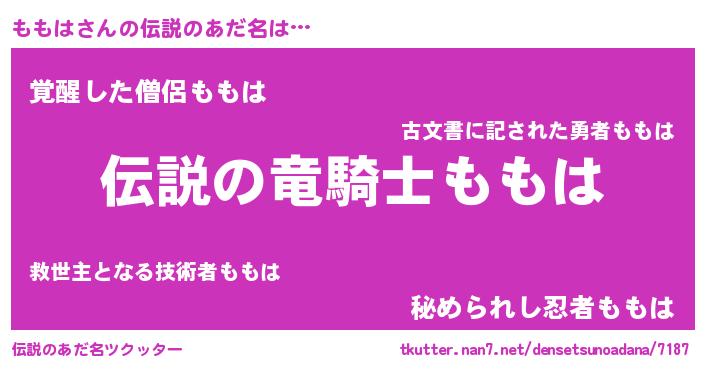 | 男性向けラノベタイトル風あだ名 | 『モモハスレイヤー』 |