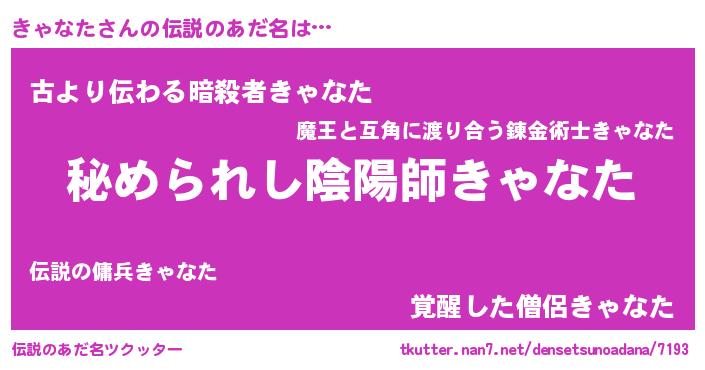 | 意味不明あだ名 | 『めかぶ科きゃなた属』『自称きゃなた』 |
