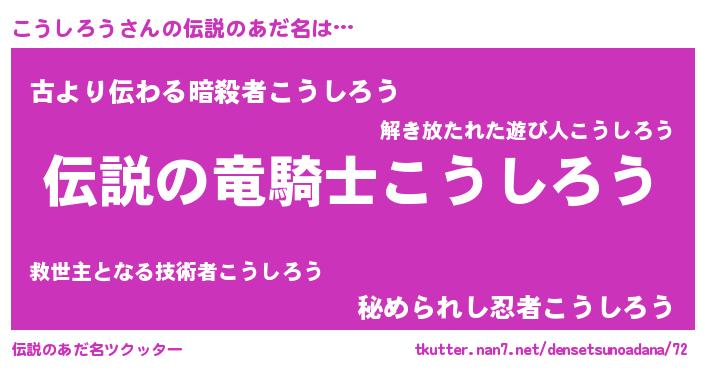 | 男性向けラノベタイトル風あだ名 | 『コウシロウスレイヤー』 |