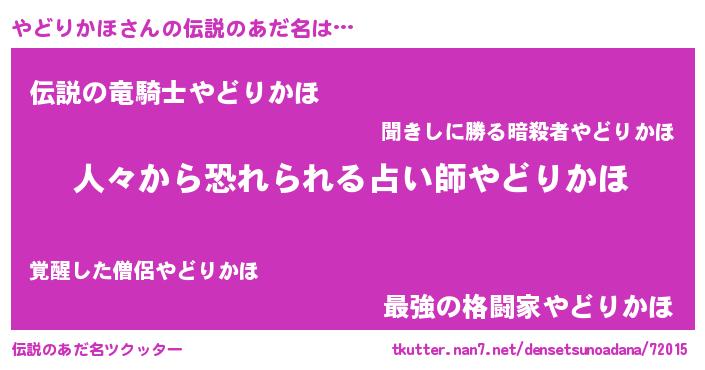 | ヒーロー風カッコイイあだ名 | 『正義の使者やどりかほ』『天弓騎士ヤド』 |