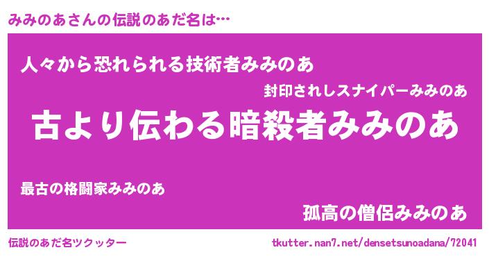| 意味不明あだ名 | 『永久保存みみのあ』『自称みみのあ』 |