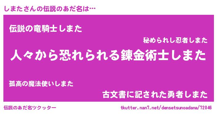 | 男性向けラノベタイトル風あだ名 | 『緋弾のシマタ』『魔法科高校のしまた』 |