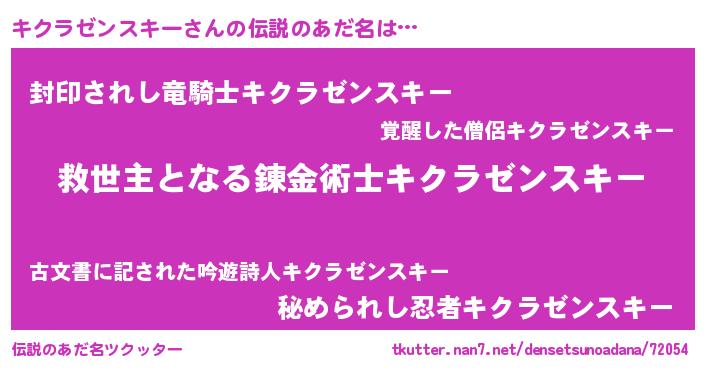 | ヒーロー風カッコイイあだ名 | 『慈愛の使者キクラゼンスキー』 |