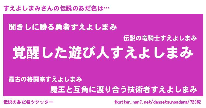 | 男性向けラノベタイトル風あだ名 | 『すえよしまみの嫁は女の子じゃないと思った?』 |