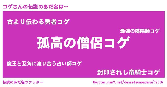| 胡散臭い通販商品みたいなあだ名 | 『信頼と実績のネックレス…その名も「コゲ」』 |