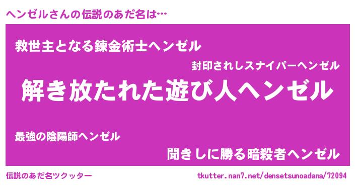 | ポケモン風あだ名 | 『ヒヘンゼル』『ヘンセウス』 |