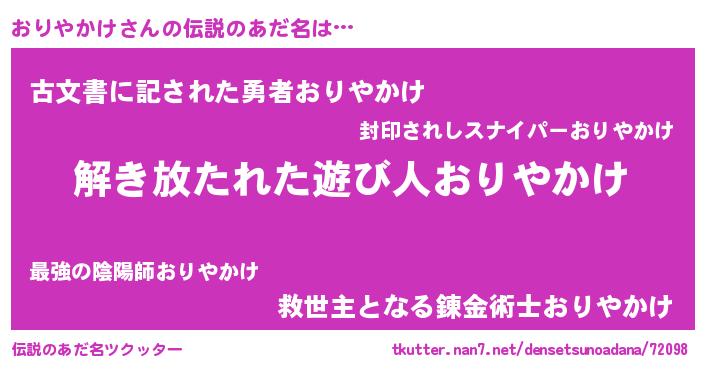 | ヒーロー風カッコイイあだ名 | 『仮面オリダー』『天弓騎士オリ』 |