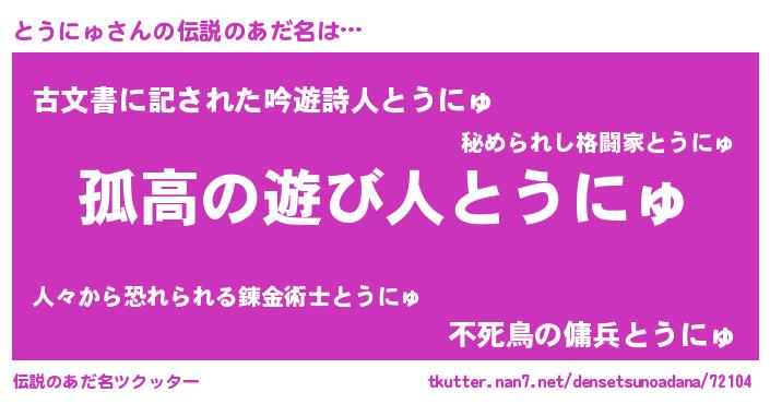 | 意味不明あだ名 | 『とにかく怪しいとうにゅ』 |