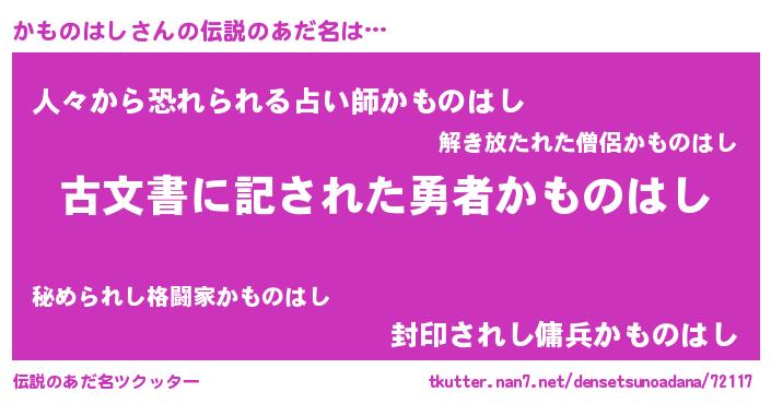 | 意味不明あだ名 | 『永久保存かものはし』『自称かものはし』 |