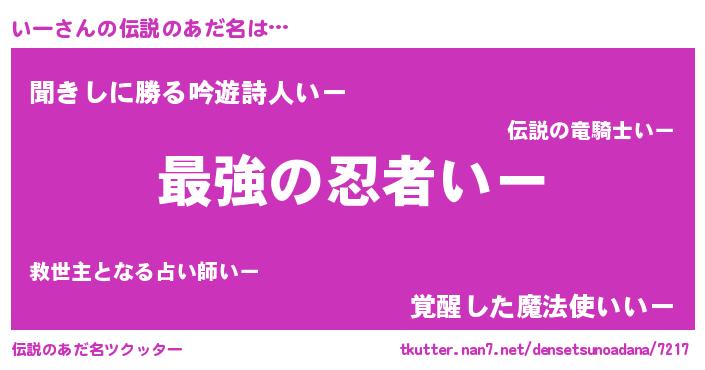 | 意味不明あだ名 | 『ヨモギ科いー属』『自称いー』 |