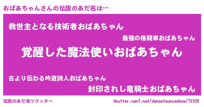 | ヒーロー風カッコイイあだ名 | 『炎刃騎士オバ』『最強戦士オバアチャン』 |