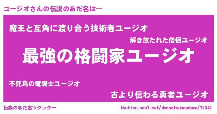 | 意味不明あだ名 | 『ユージオフォーエバー』『自称ユージオ』 |
