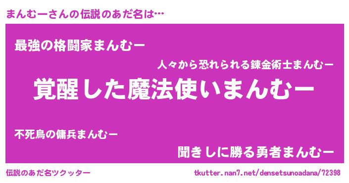 | ヒーロー風カッコイイあだ名 | 『天弓騎士マン』『ウルトラまんむーマン』 |