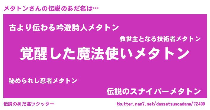 | ヒーロー風カッコイイあだ名 | 『幻影騎士メタ』『ウルトラ戦士メタトン』 |
