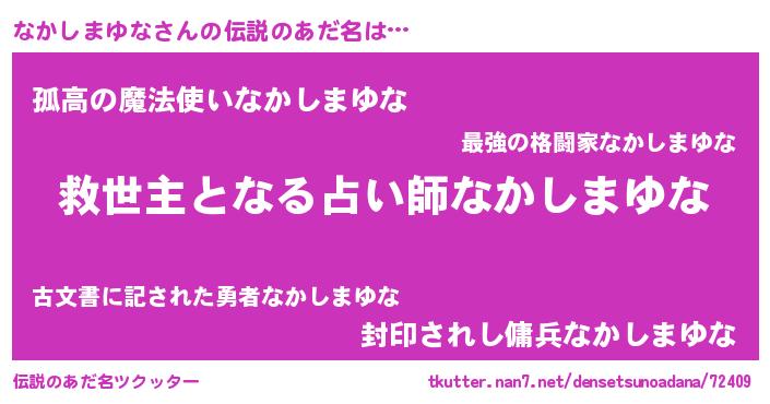 | 意味不明あだ名 | 『ヨモギ科なかしまゆな属』 |