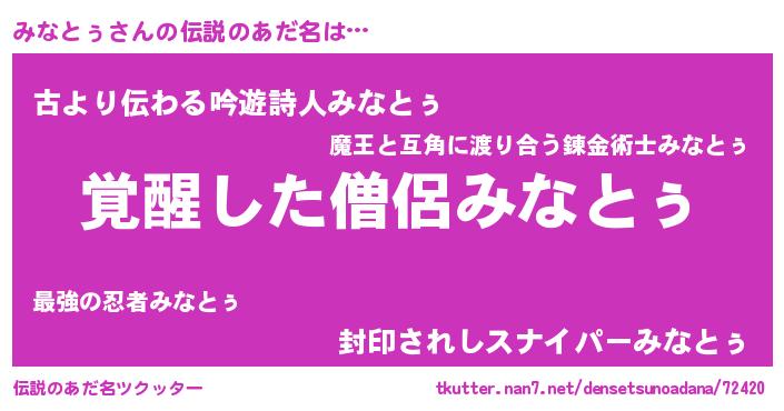 | ヒーロー風カッコイイあだ名 | 『究極戦士ミナトゥ』『幻影騎士ミナ』 |