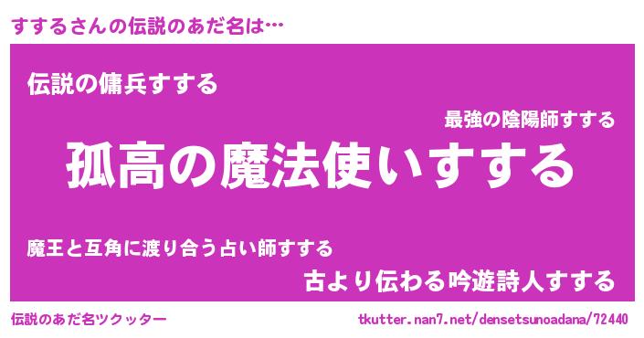 | 胡散臭い通販商品みたいなあだ名 | 『信頼と実績のサプリメント…その名も「すする」』 |