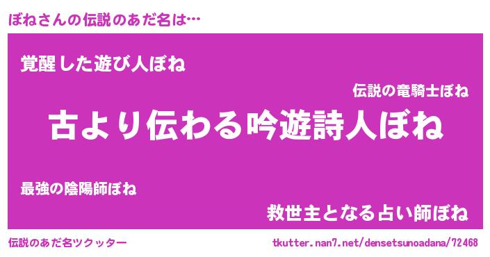 | 意味不明あだ名 | 『永久保存ぼね』『つくし科ぼね属』 |