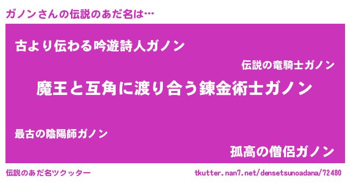 | ヒーロー風カッコイイあだ名 | 『友情の使者ガノン』『仮面ガノダー』 |