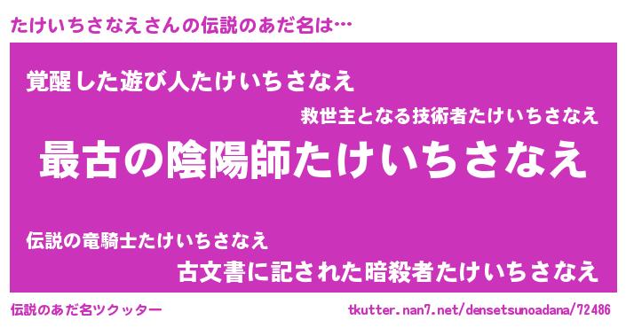 | 意味不明あだ名 | 『住所不定無職たけいちさなえ(71歳)』 |