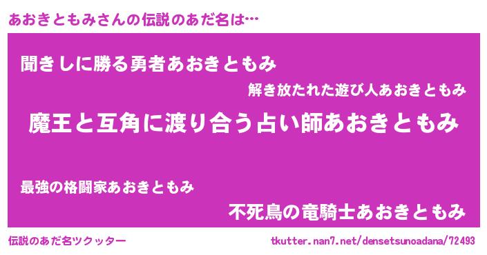 | ヒーロー風カッコイイあだ名 | 『愛の使者あおきともみ』『仮面アオダー』 |
