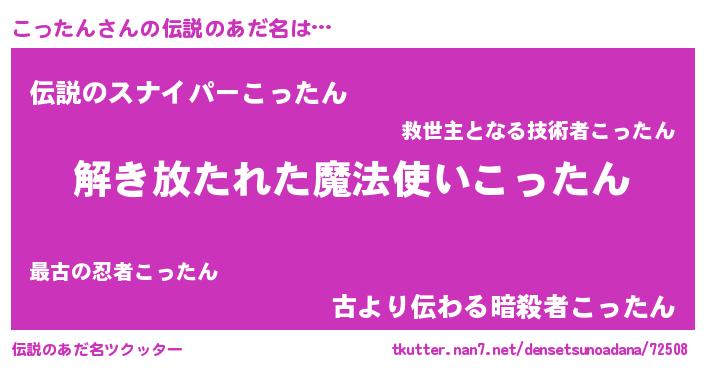 | ヒーロー風カッコイイあだ名 | 『魔戒騎士コッ』『スーパーコッタン』 |