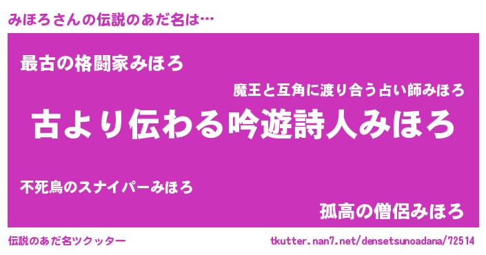 | ヒーロー風カッコイイあだ名 | 『ネオミホロ』『ウルトラみほろマン』 |