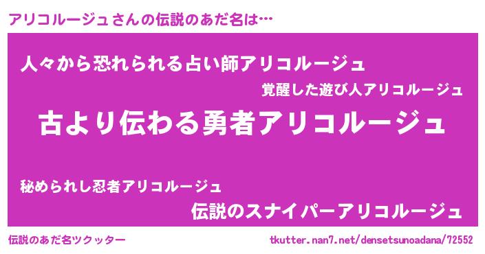 | 意味不明あだ名 | 『永久保存アリコルージュ』 |