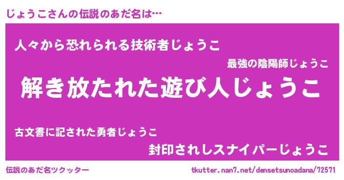| 意味不明あだ名 | 『とにかく怪しいじょうこ』 |