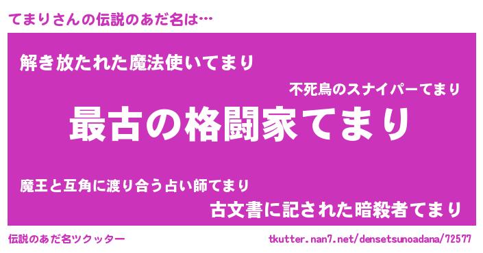 | ヒーロー風カッコイイあだ名 | 『ウルトラてまりマン』『天弓騎士テマ』 |