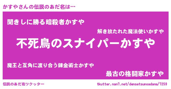 | 女子向けラノベタイトル風あだ名 | 『かすや姫と円卓の騎士』『闇のかすや』 |