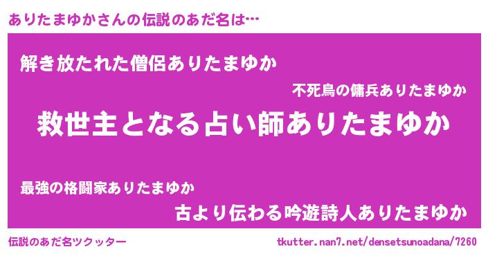 | ヘコむあだ名 | 『あり太郎』『ありたまゆか(笑)』 |