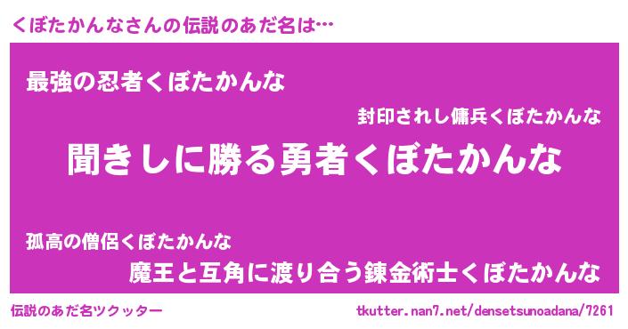 | 男性向けラノベタイトル風あだ名 | 『くぼたかんなという概念が存在しない退屈な世界 』 |